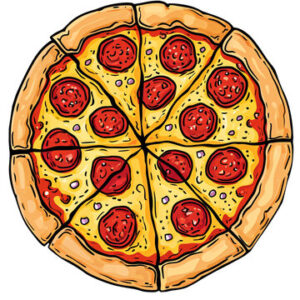 Au menu : votre choix de pizza au fromage ou peppéroni avec frites. |